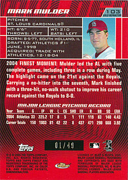 ![]() 2005 Finest Gold Refractors #103 01/49 |