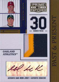 ![]() 2005 Prime Patches Past and Present Autograph Number Patch #PP12 40/50 |