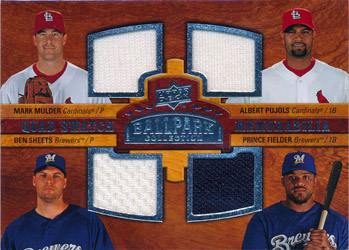 ![]() 2008 Upper Deck Ballpark Collection Quad Swatch #235 Mulder/Pujols/Sheets/Fielder |