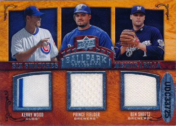 ![]() 2008 Upper Deck Ballpark Collection Six Swatches #267 Pujols/Mulder/Lee/Wood/Fielder/Sheets |