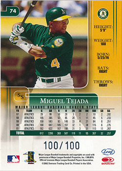 ![]() 2002 Leaf Rookies and Stars Longevity #74 100/100 |