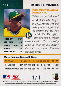 ![]() 2003 Donruss Champions Atlantic City National Holo-Foil #187 1/1 |