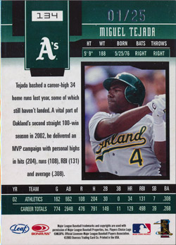 ![]() 2003 Leaf Certified Materials Mirror Emerald #134 01/05 |