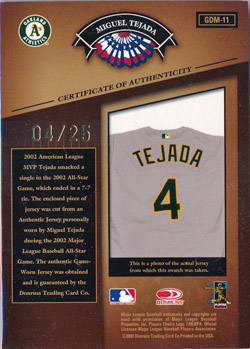 ![]() 2003 Timeless Treasures Game Day Materials Autographs #GDM11 04/25 |
