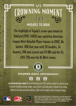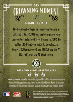![]() 2005 Diamond Kings Framed Black Platinum #415 1/1 |