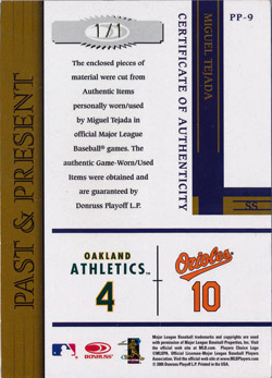 ![]() 2003 Playoff Prestige Stars of MLB Jersey Autographs #PM9 20/25 |