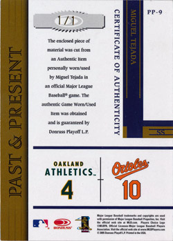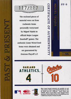 ![]() 2003 Playoff Prestige Patches of MLB Autographs #PM9 01/10 |