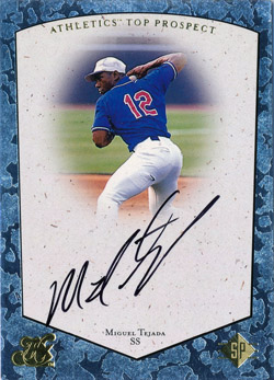 ![]() 2001 Fleer Showcase Sweet Sigs Leather (print run: 75) |
