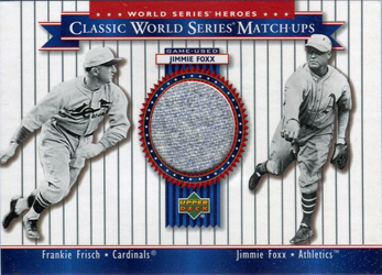 ![]() 2002 Upper Deck World Series Heroes World Series Match-Ups Materials #MU30 Jimmie Foxx Pants/Frankie Frisch |