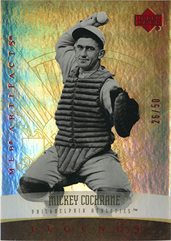 ![]() 2005 Artifacts Rainbow Red #180 Mickey Cochrane 26/50 |
