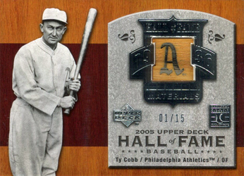 ![]() 2005 Upper Deck Hall of Fame Materials Silver Bat #HFM-TC3 Ty Cobb 01/15 |