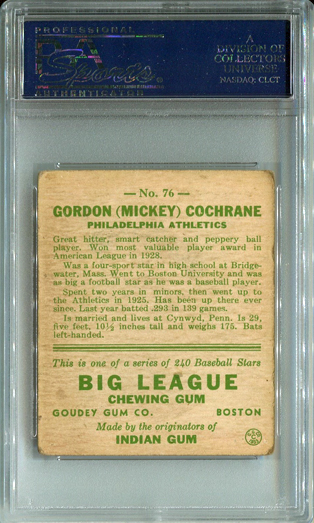 ![]() 1933 Goudey #76 Mickey Cochrane PSA 2 |