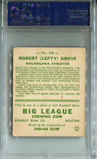 ![]() 1933 Goudey #220 Lefty Grove PSA 3 (MC) |