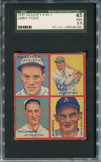 ![]() 1935 Goudey 4 in 1 Jimmie Foxx SGC 45 |