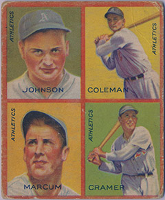 ![]() 1935 Goudey 4 in 1 Johnson/Coleman/Marcum/Cramer |