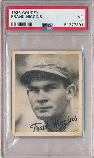 ![]() 1936 Goudey Pinky Higgins, PSA 3 |