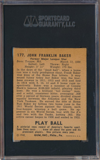 ![]() 1940 Play Ball #177 Home Run Baker SGC 60 |
