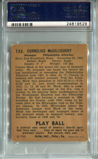 ![]() 1940 Play Ball #132 Connie Mack PSA 3.5 |