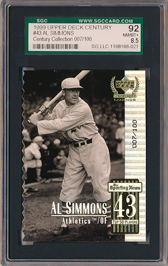 ![]() 1999 Upper Deck Century Legends Century Collection #43 Al Simmons 007/100 |
