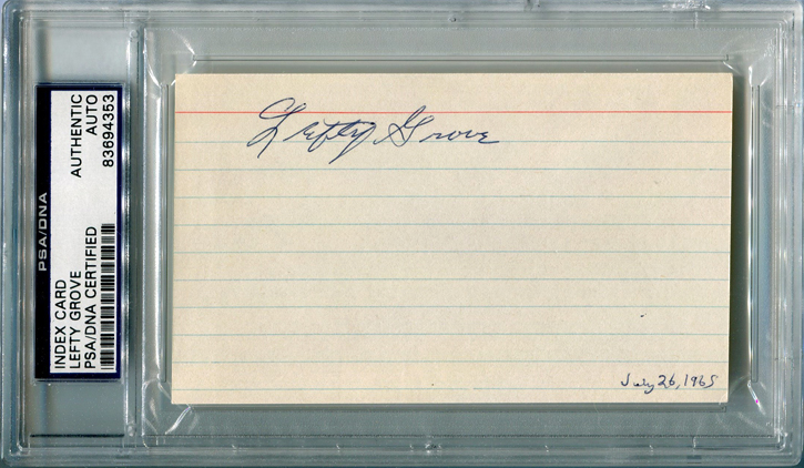 Lefty Grove PSA/DNA Certified Autographed Index Card
