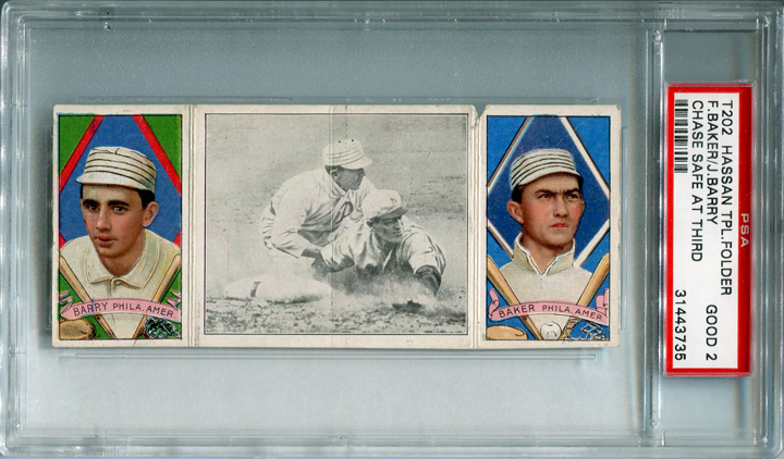 1912 T202 Hassan Triple Folders Frank Baker/Jack Barry/Chase Safe at Third