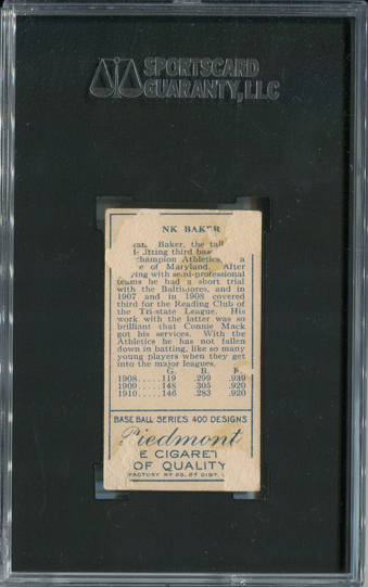 ![]() 1909-11 T206 Mike Powers Piedmont Back, SGC 2.5 |
