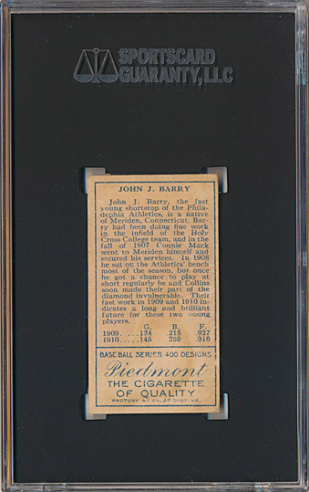 ![]() 1909-11 T206 Jack Barry Piedmont Back, SGC 40 |