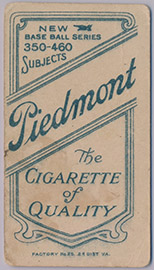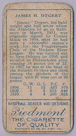 ![]() 1909-11 T206 Jimmy Dygert Piedmont Back |