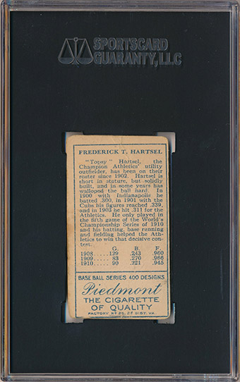 ![]() 1909-11 T206 Topsy Hartsel Piedmont Back |