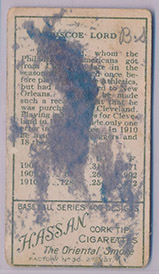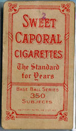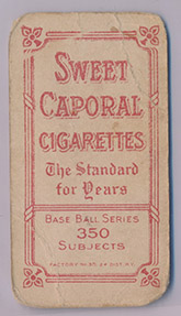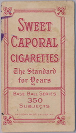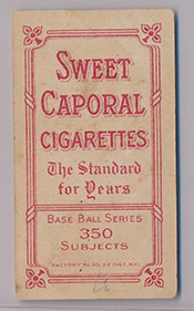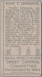 ![]() 1909-11 T206 Paddy Livingstone Sweet Caporal Back |