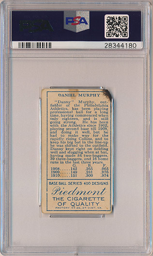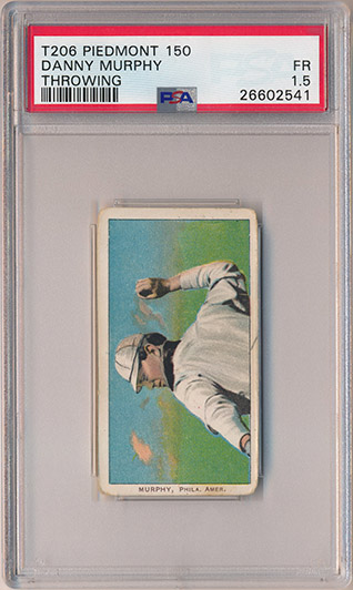 ![]() 1909-11 T206 Danny Murphy (throwing) Piedmont Back, PSA 1.5 |