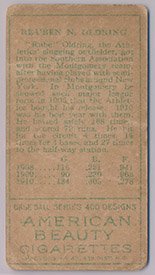 ![]() 1909-11 T206 Rube Oldring (batting) Piedmont Back |