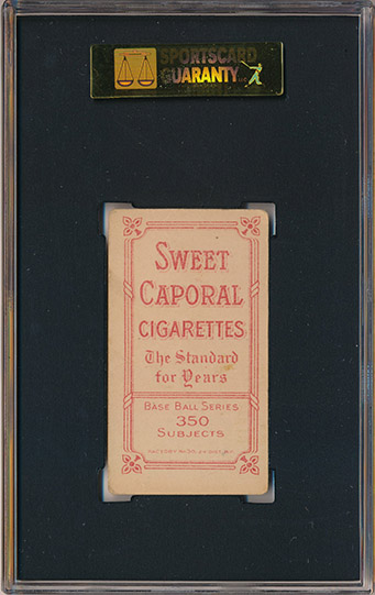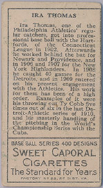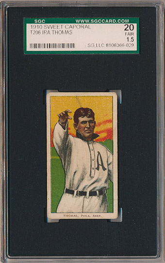 ![]() 1909-11 T206 Ira Thomas Sweet Caporal Back, SGC 1.5 |