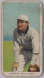 ![]() 1909-11 T206 Simon Nicholls (batting) Sweet Caporal Back |