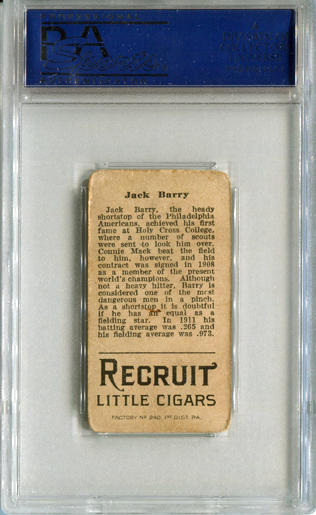 ![]() 1912 T207 Brown Background Jack Barry PSA 1 |