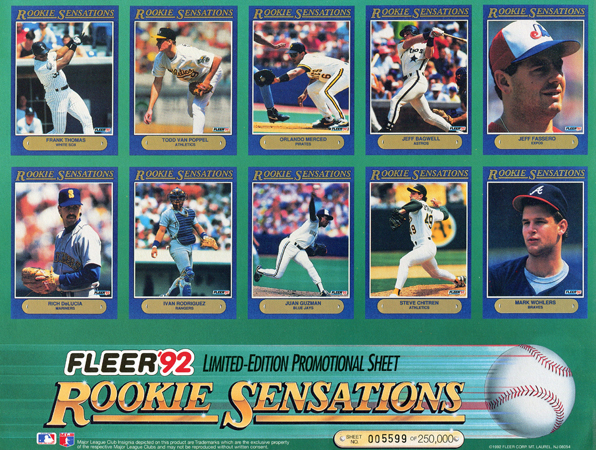 1992 Fleer Rookie Sensations Sheet 005599/250,000