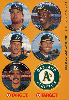 1994 A's Pogs Target Sheet, Unlicensed 'RBI' Card Sheet