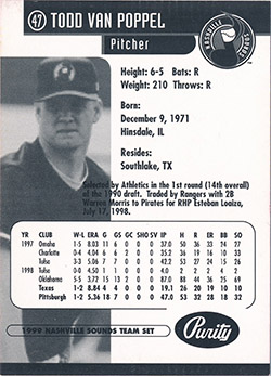 ![]() 1999 Nashville Sounds Team Issue #22 (Purity ad back) |