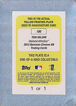 ![]() 2012 Bowman Chrome Printing Plate Yellow RC #196 1/1 |