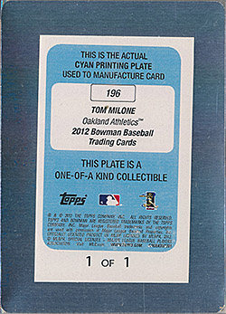 ![]() 2012 Bowman Printing Plate Cyan RC #196 1/1 |