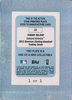 ![]() 2012 Bowman Sterling Printing Plate Cyan RC #22 1/1 |