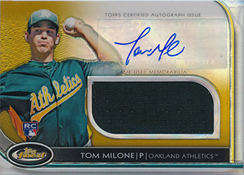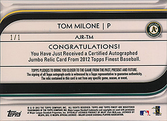 ![]() 2012 Finest Rookie Jumbo Relic Autographs Gold Refractors #AJR-TM 19/50 |