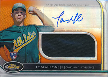 ![]() 2012 Finest Rookie Jumbo Relic Autographs Orange Refractors #AJR-TM 53/99 |