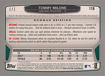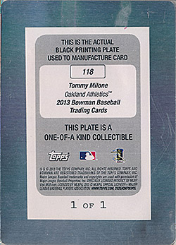 ![]() 2013 Bowman Printing Plate Black #118 1/1 |