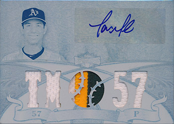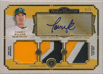 ![]() 2013 Topps Museum Collection Signature Swatches Triple Relic Autographs Platinum #SSATR-TM 4/5 |