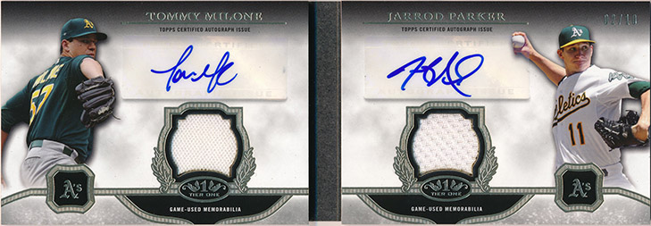 2013 Topps Tier One Dual Autograph Dual Relics #TODAR-MPK Milone/Parker 02/10