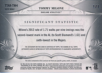 ![]() 2013 Topps Triple Threads Relic Autographs White Whale Printing Plates #TTAR-TM4 1/1 |