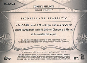![]() 2013 Topps Triple Threads Relic Autographs #TTAR-TM4 12/18 |