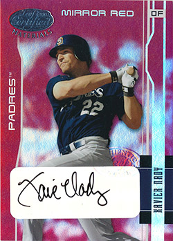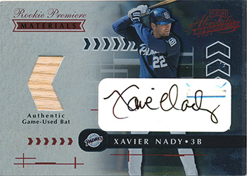 ![]() 2001 Absolute Memorabilia Rookie Premiere Materials Bat Autograph #178 014/700 (first 25 autographed) |