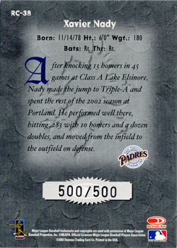 ![]() 2002 Donruss Rookies Crusade Autographs #RC38 500/500 (back) |